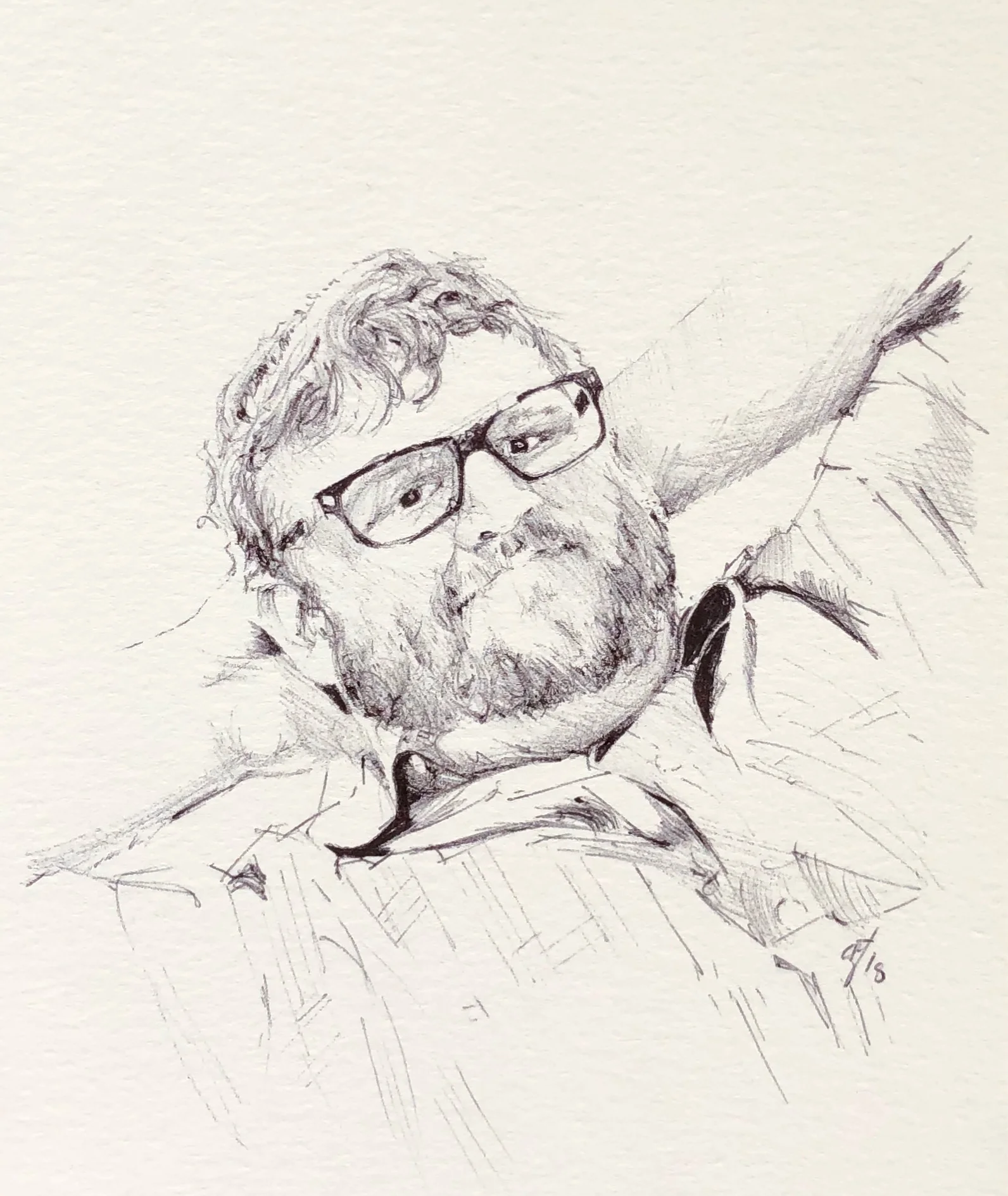 I don’t often taken on commissions to produce work in someone’s likeness. Travis is the exception. I didn’t know him personally but I do know and adore his family. You see Travis’ mom shares a parallel with me in her journey through life. Her baby was epileptic. Any parent with a child who has an illness classified as life threatening shares the parallel stride that we all wish we could just hand over to the big guy. Reality is the weight becomes some sort of backpack and the concern kind of fades, the whatifs never dissipate but, you know for goodness sake, you must continue so that your baby has the normal most people take for granted. For Travis’ mom, she has experienced the greatest loss. One of those whatif moments took her son. My heart can’t handle what she has experienced so, I say yes to remembering the joy Travis brought to this world and celebrate this brave mom with this gift to her. I look forward to meeting her and having lunch soon. The most sincere gratitude fills my heart for his loved ones who have trusted me with this thoughtful gift. They also allowed me to try a new medium I’ve admired for some time. This sketch entirely in ballpoint pen.