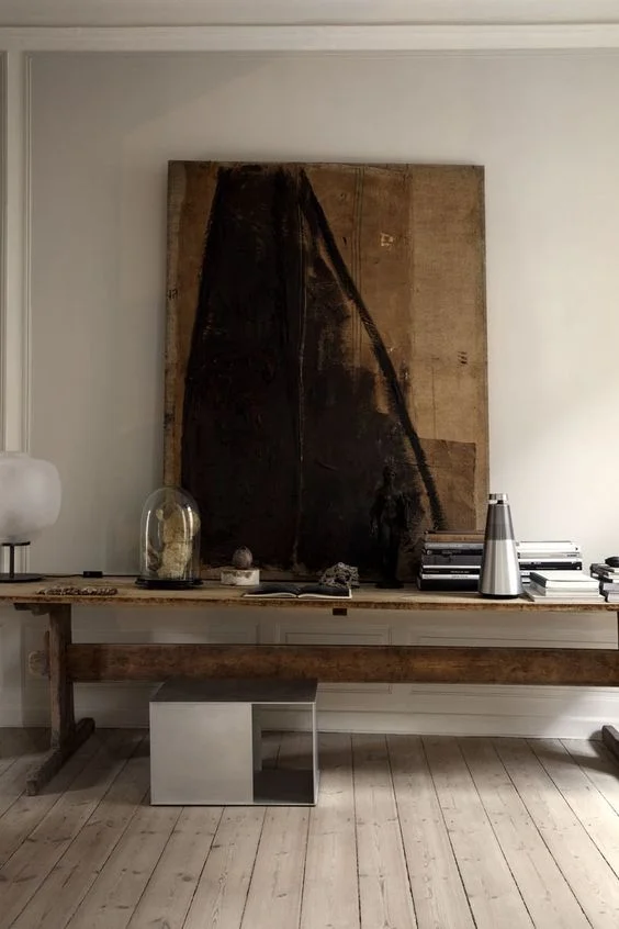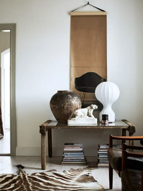 Design Oliver Gustav Sculpture in resin, glass dome, by the late Emil Westman Hertz, and the round table lamp by Italian Vincenzo De Cotiis, ustic painting by the late Alberto Burri. Source Bo Bedre © Heidi Lerkenfeldt/CPH Editorial